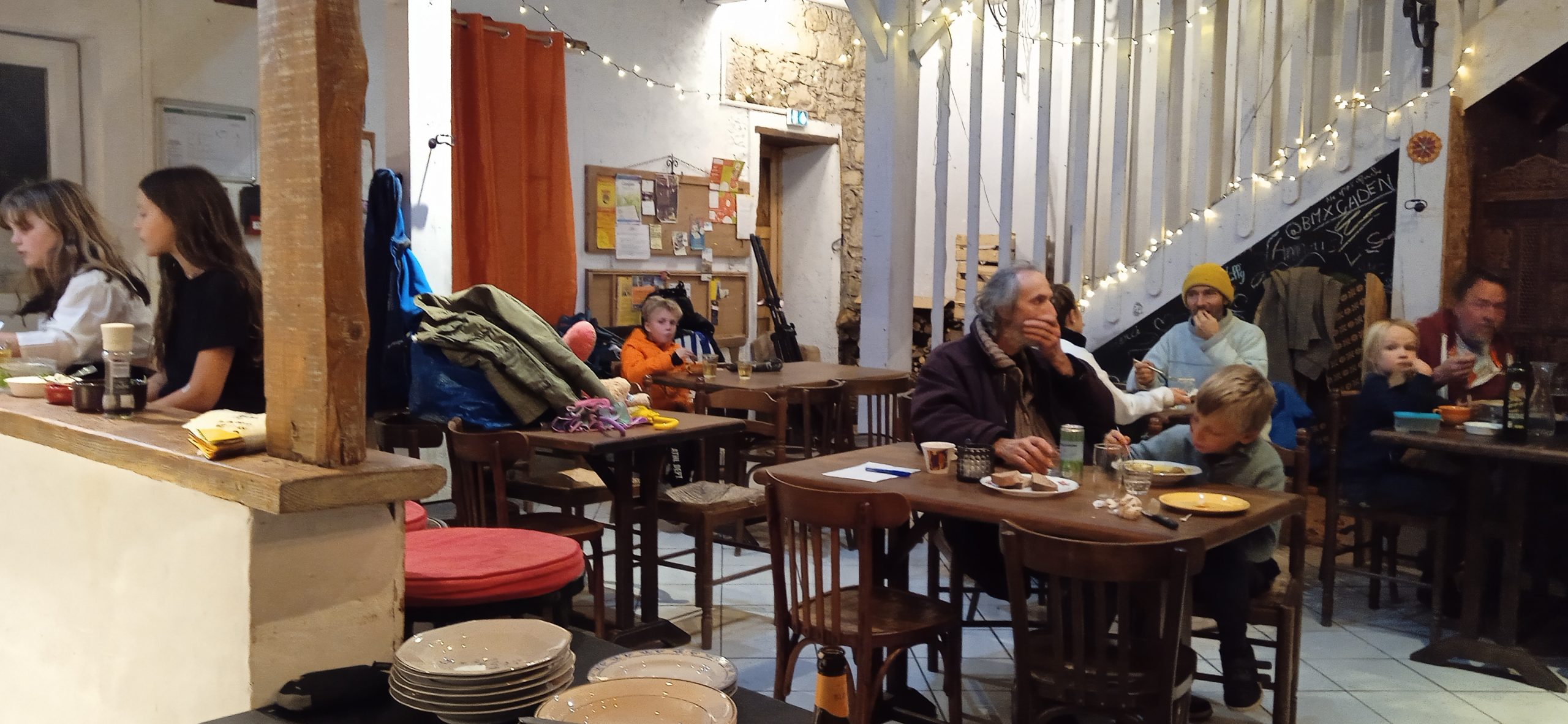 Un espace de coworking va aussi exister bientôt au couloir du 1er étage. En hiver, la salle et le café sont tous les 2 chauffés au bois avec un poêle dans chaque lieu. Les toilettes avec lavabo sont au rdc.